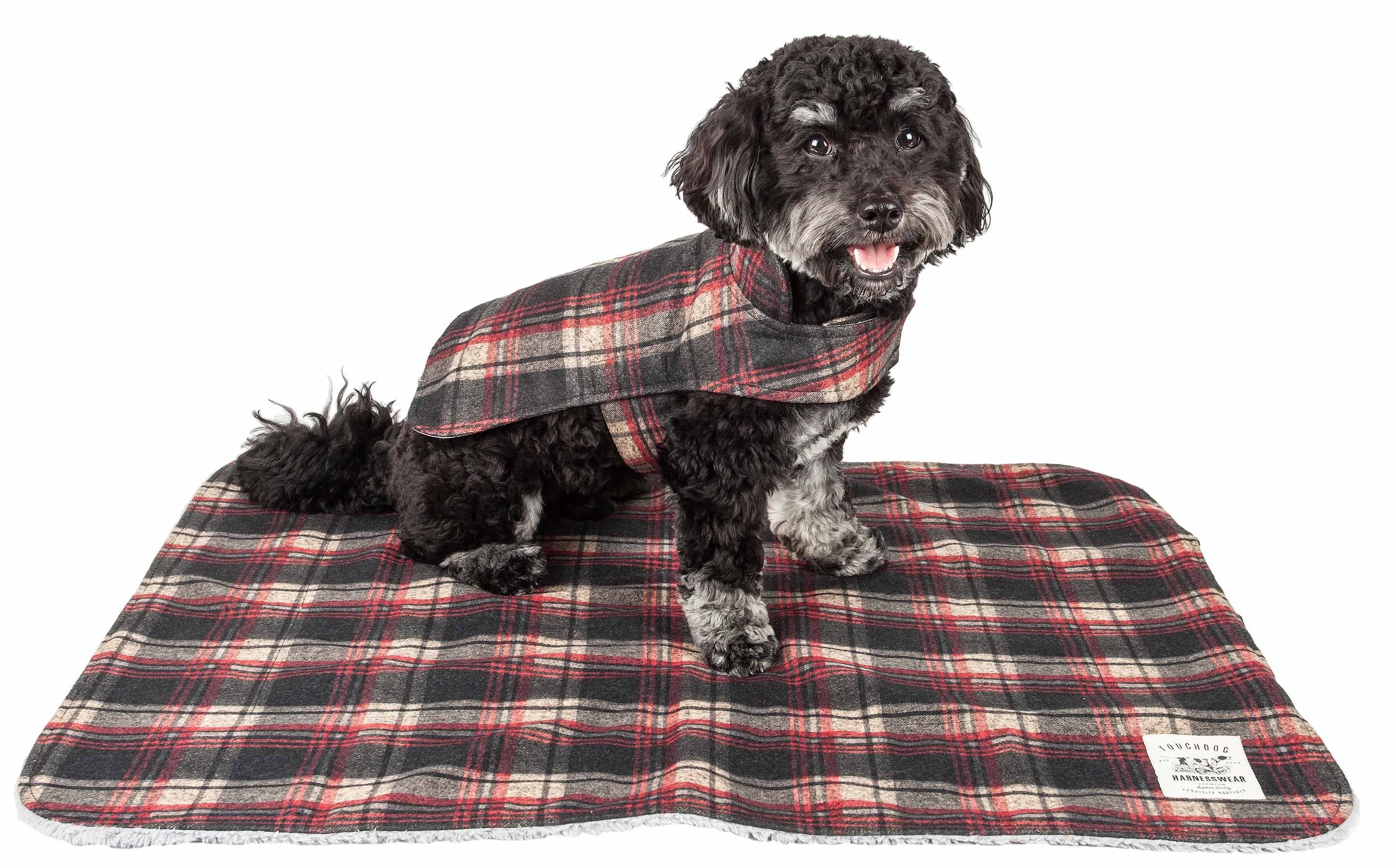Touchdog 2-In-1 Tartan Plaided Dog Jacket With Matching Reversible Dog Mat