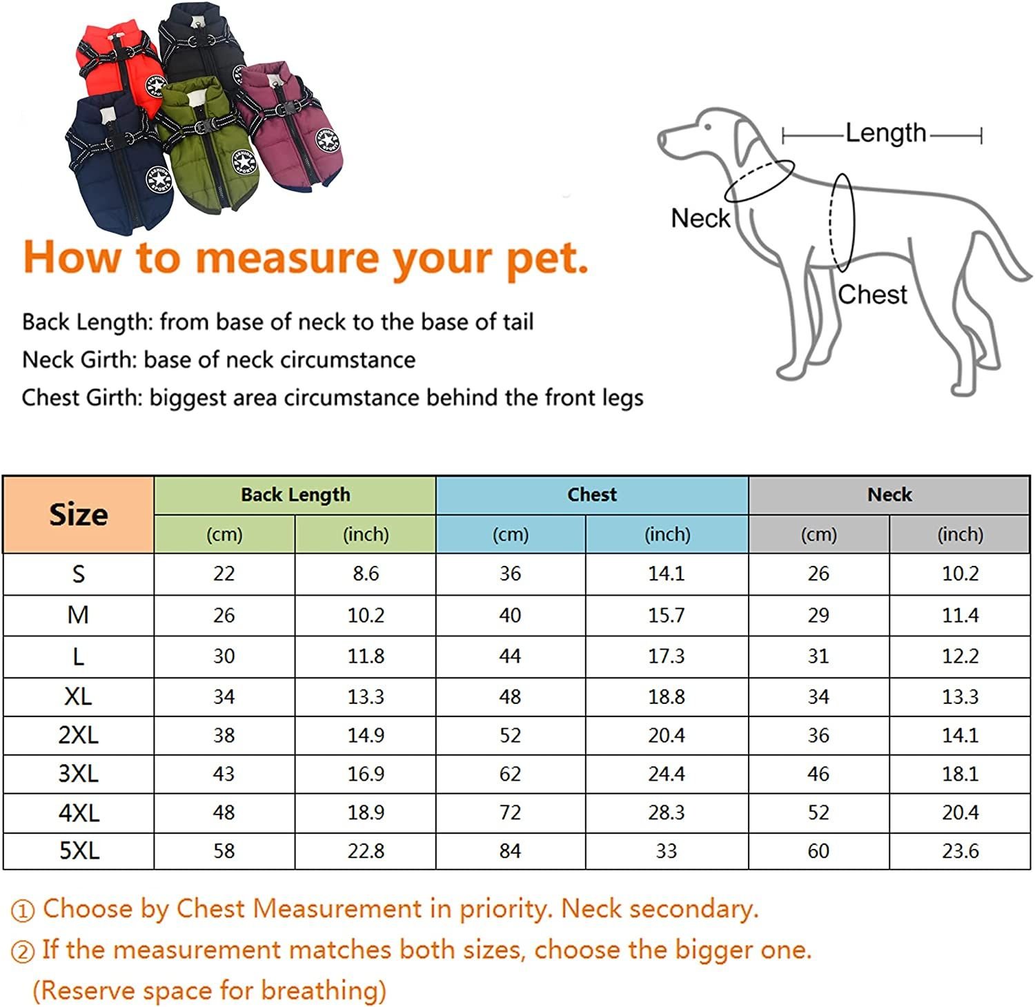 ♥Size- Please first measure your dog's chest and neck length and back length before each purchasing; each purchasing should measure the length. then carefully choose size according to size chart or consult with us.