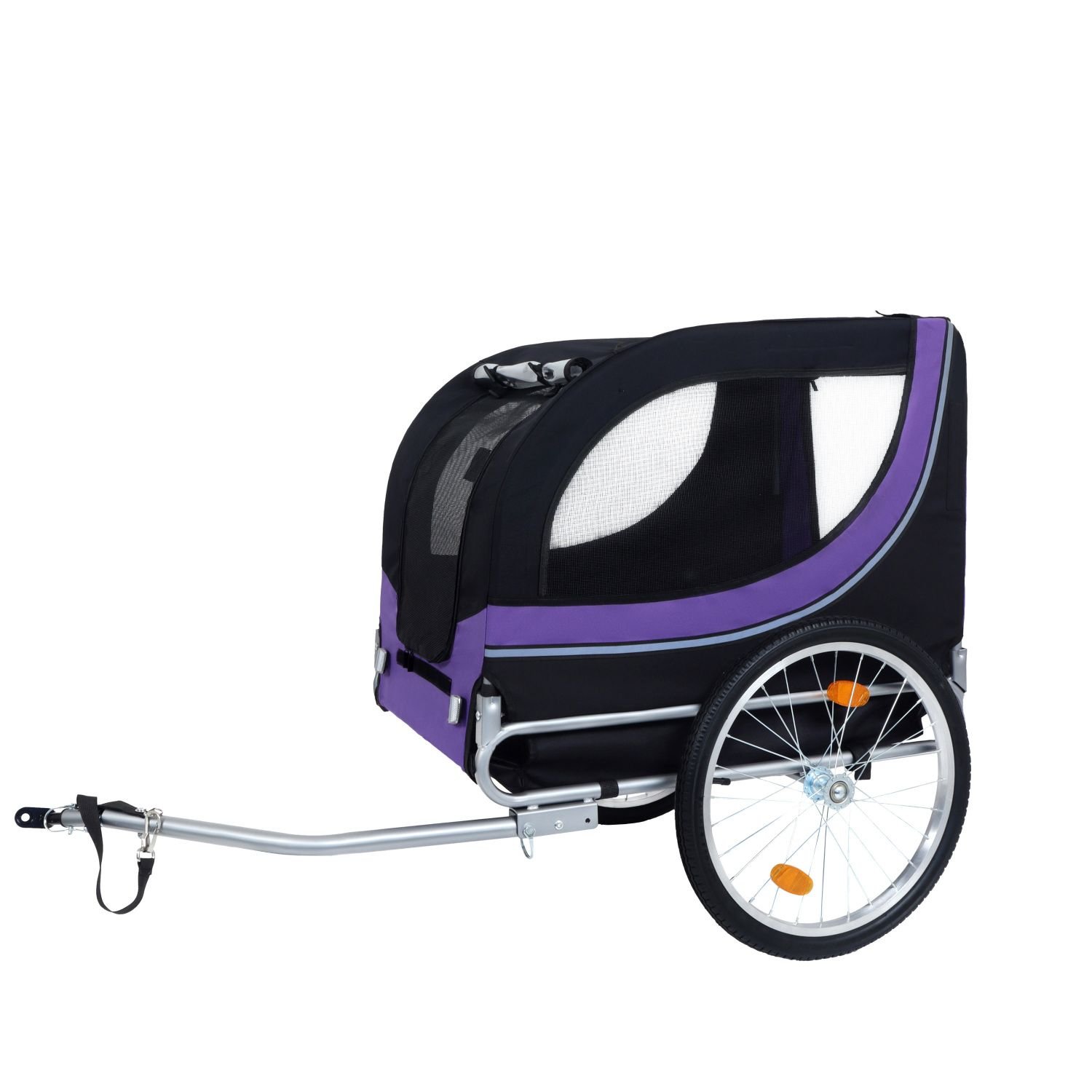 All-Terrain Performance & Safety FeaturesGlide - smoothly over bumps with 20' air-filled tires designed for stability and shock absorption. A waterproof PVC rain cover shields against rain, while reflective wheel strips boost visibility in low-light conditions. The roll-up front panel offers pets a clear view, turning every ride into a scenic adventure.