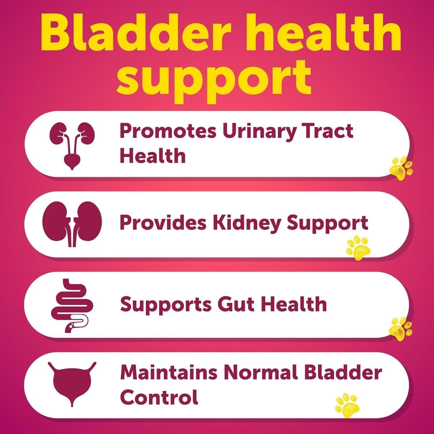 3.Comprehensive Bladder Control for Dogs: These cranberry chews offer exceptional bladder support for dogs, helping to maintain healthy kidney and urinary tract function while reducing the likelihood of recurring infections