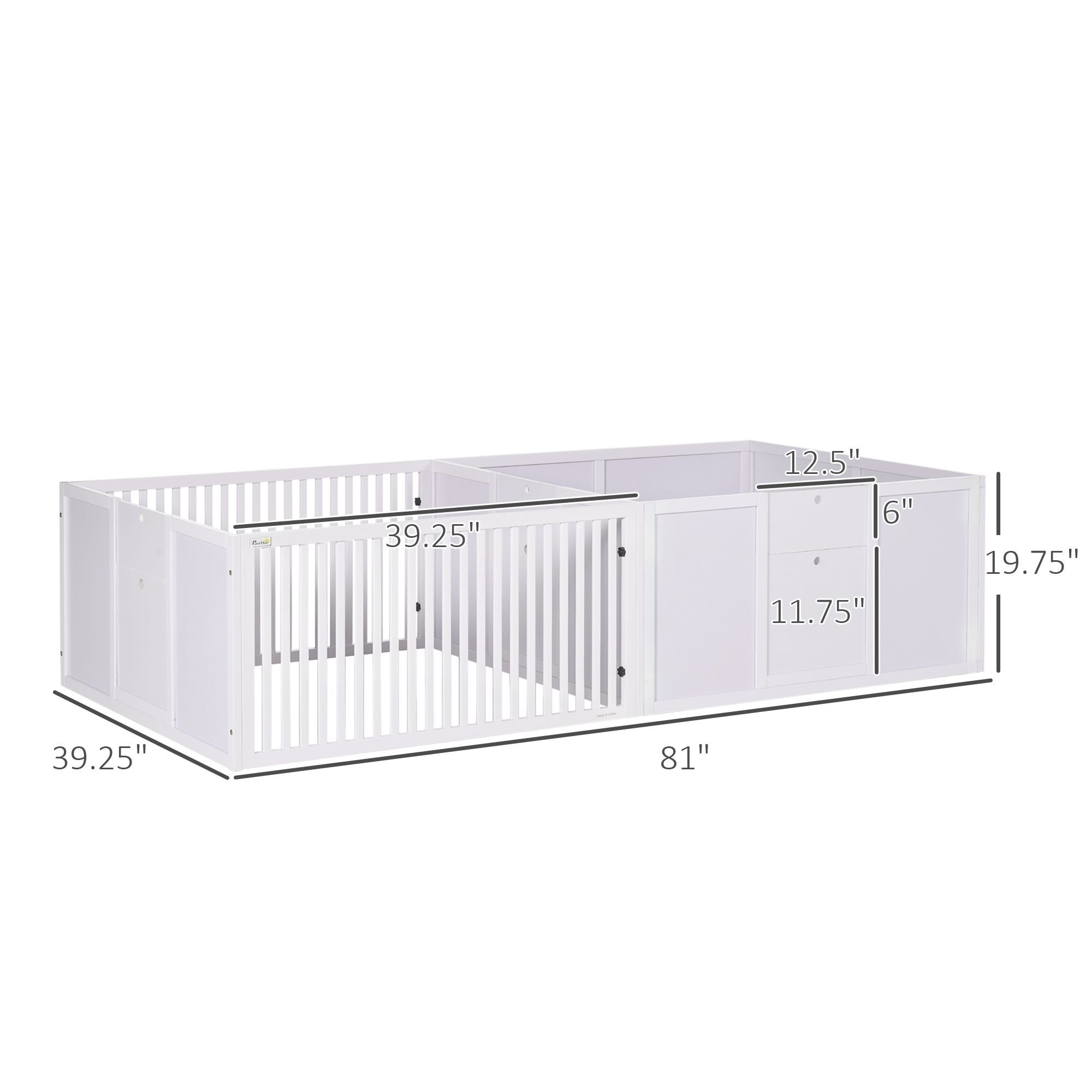 5.- Dog Whelping Box Info: Overall Dimensions: 81"" L x 39.25"" W x 19.75"" H. Single Panel: 12.5"" W x 6"" H. Assembly required. Please note that dog pee pad is not included..